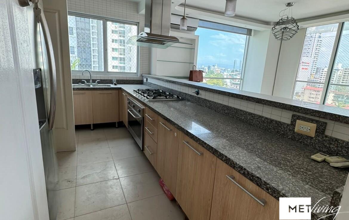 Moderno apartamento en PH Tao Tower San Francisco 205m2, 3 habitaciones con su baño cada uno, medio baño de visitas+ 1 habitación de servicio con su baño, walking clóset, 2 estacionamientos. El PH cuenta con un área social bastante completa con piscina, parque infantil, salón de juegos, gimnasio, salón de eventos.