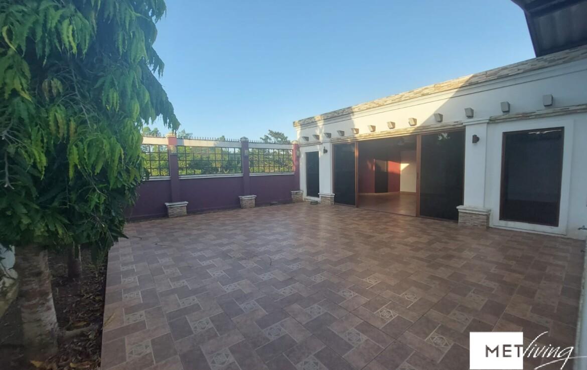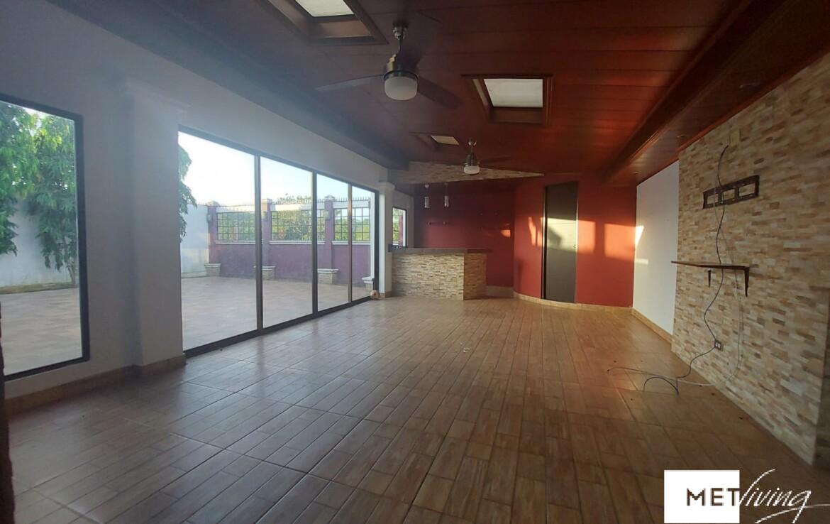 La casa cuenta con 3 habitaciones, 2.5 baños, sala, comedor, baño, lavandería, terraza trasera totalmente cerrada con baño y minibar, área de bbq, baños con puertas de vidrio, en muy buen estado.
